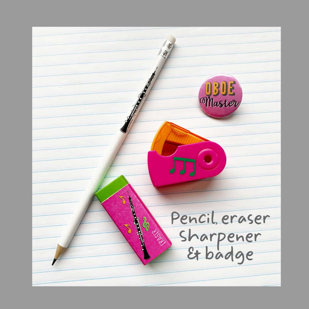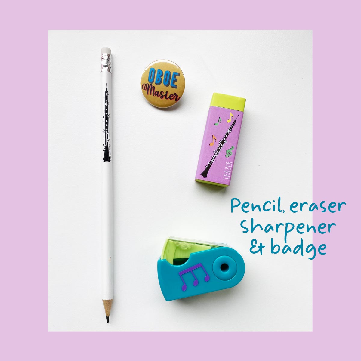 The eraser is a latex free colourful addition to your pencil case and comes in bright colours with either an image of an oboe or bassoon depending which kit you select.